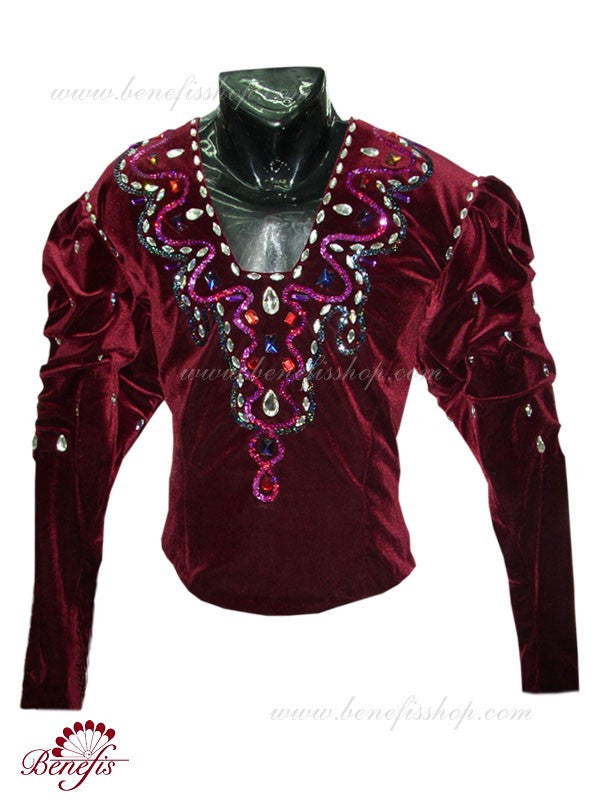 It is a professional stage costume, which is made of stretch velvet on a hard basis and has a short-cut silhouette.